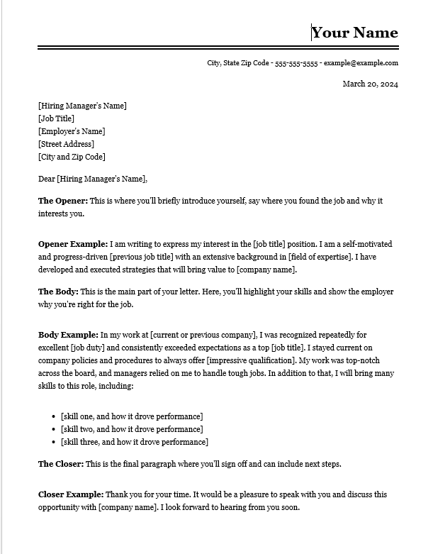 A concise, professional document that introduces the applicant, highlights key skills and relevant experience, and explains interest in a specific role or organization. It complements the resume by showcasing personality, motivation, and value, while clearly demonstrating how the candidate is a strong fit for the position.