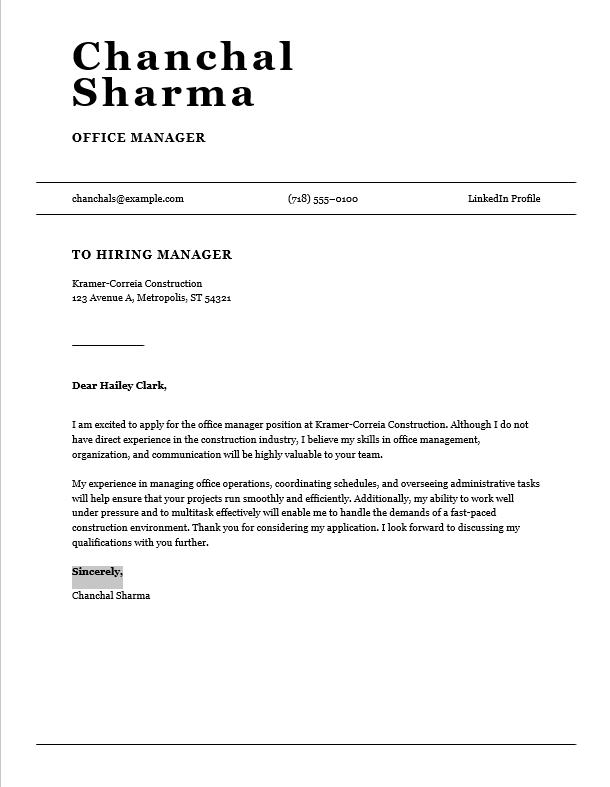 Motivated and detail-oriented Office Manager with proven expertise in coordinating office operations, streamlining administrative processes, and enhancing team productivity. Strong skills in organization, communication, and multitasking, with a track record of ensuring smooth workflows and supporting high-pressure environments. Adaptable professional seeking to bring these capabilities to support project efficiency in dynamic industries such as construction.